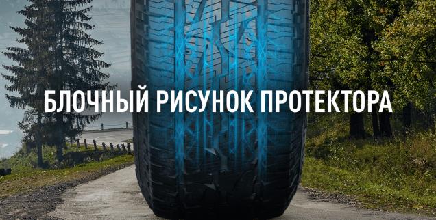 3D форма плечевых грунтозацепов и оптимальная жесткость блоков протектора повышают характеристики на внедорожных участках.